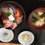 海鮮食堂仙 - 刺身定食。1000円。小鉢がポテサラと焼そば。刺身てわって、ボリューム少なめがフツーなので、焼そばはありがたいかも。